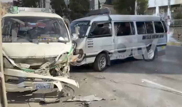 Dos minibuses colisionaron de frente en la calle 1 de Obrajes, en La Paz, dejando varios heridos, entre ellos dos menores de edad.