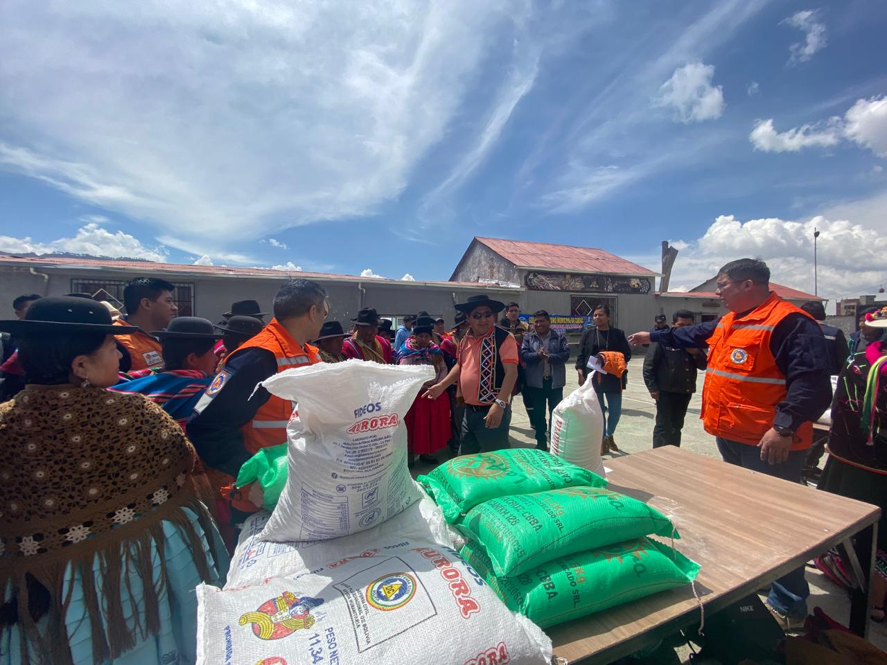 El sábado, el Viceministro de Defensa Civil, Juan Carlos Calvimontes, entregó 195 toneladas de ayuda humanitaria a 6.715 familias que resultaron afectadas por condiciones climáticas adversas en 13 municipios del departamento de La Paz. La asistencia incluye bolsas de fideos, azúcar, arroz y harina, con una inversión total de Bs 2.612.453,00.