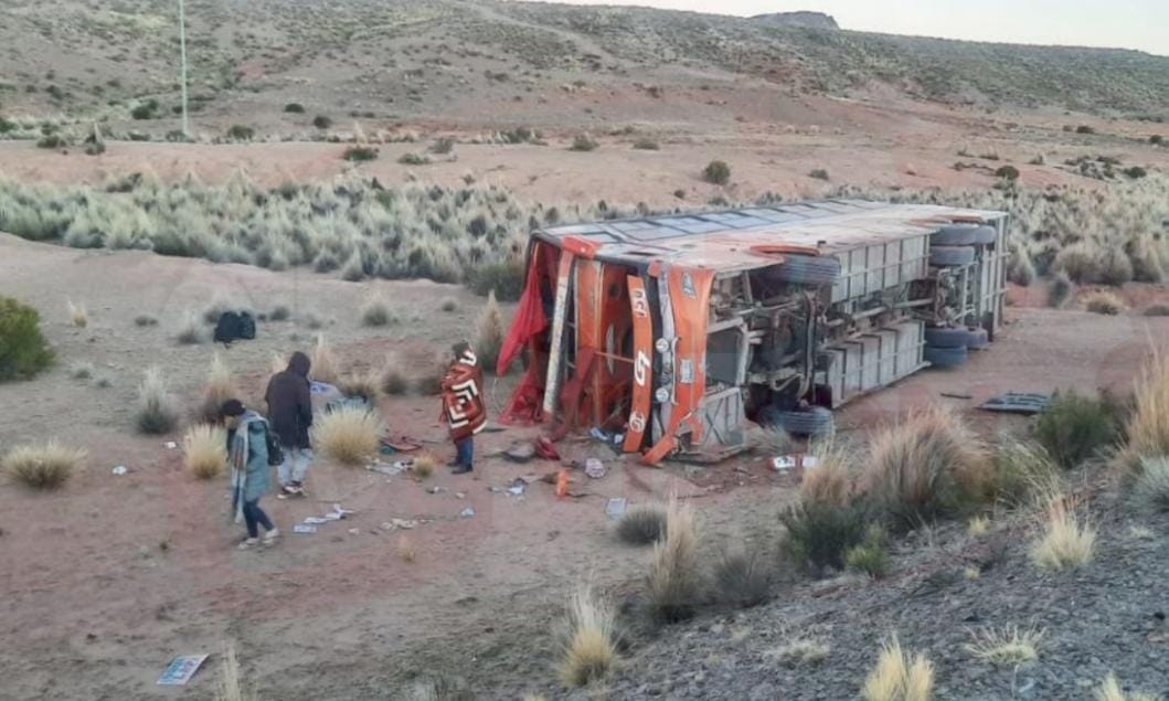 Un bus de la empresa Trans del Sur se volcó en la ruta La Paz-Villazón, cerca de la localidad de Keluyo, a 61 kilómetros de Uyuni. El vehículo perdió el control y dejó 17 personas heridas. El hecho ocurrió la mañana de este jueves.