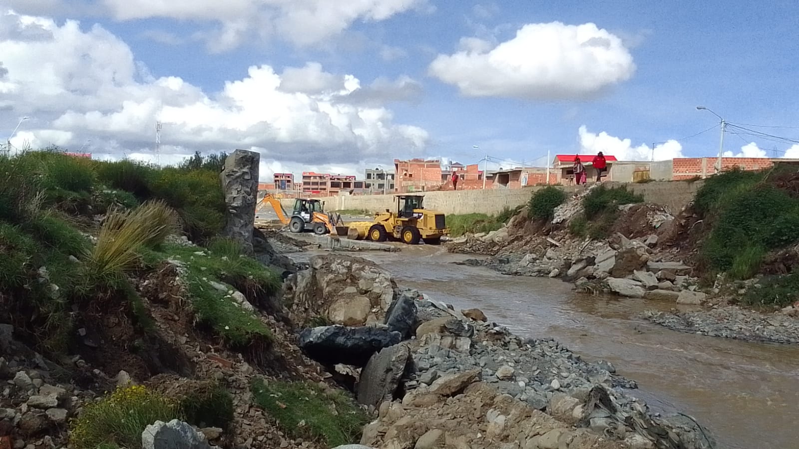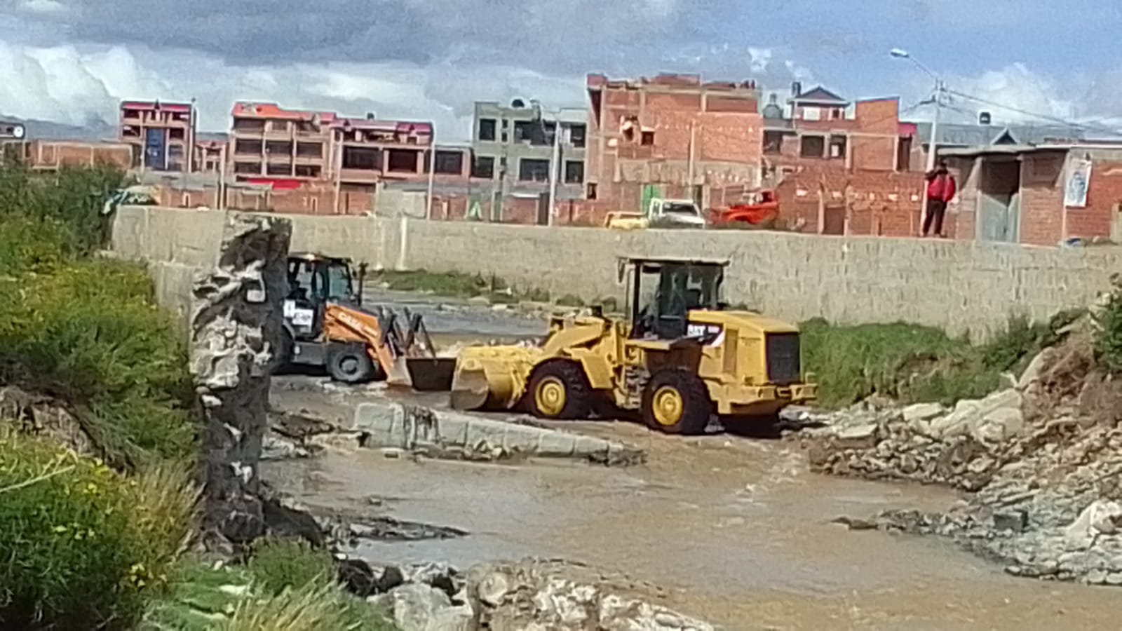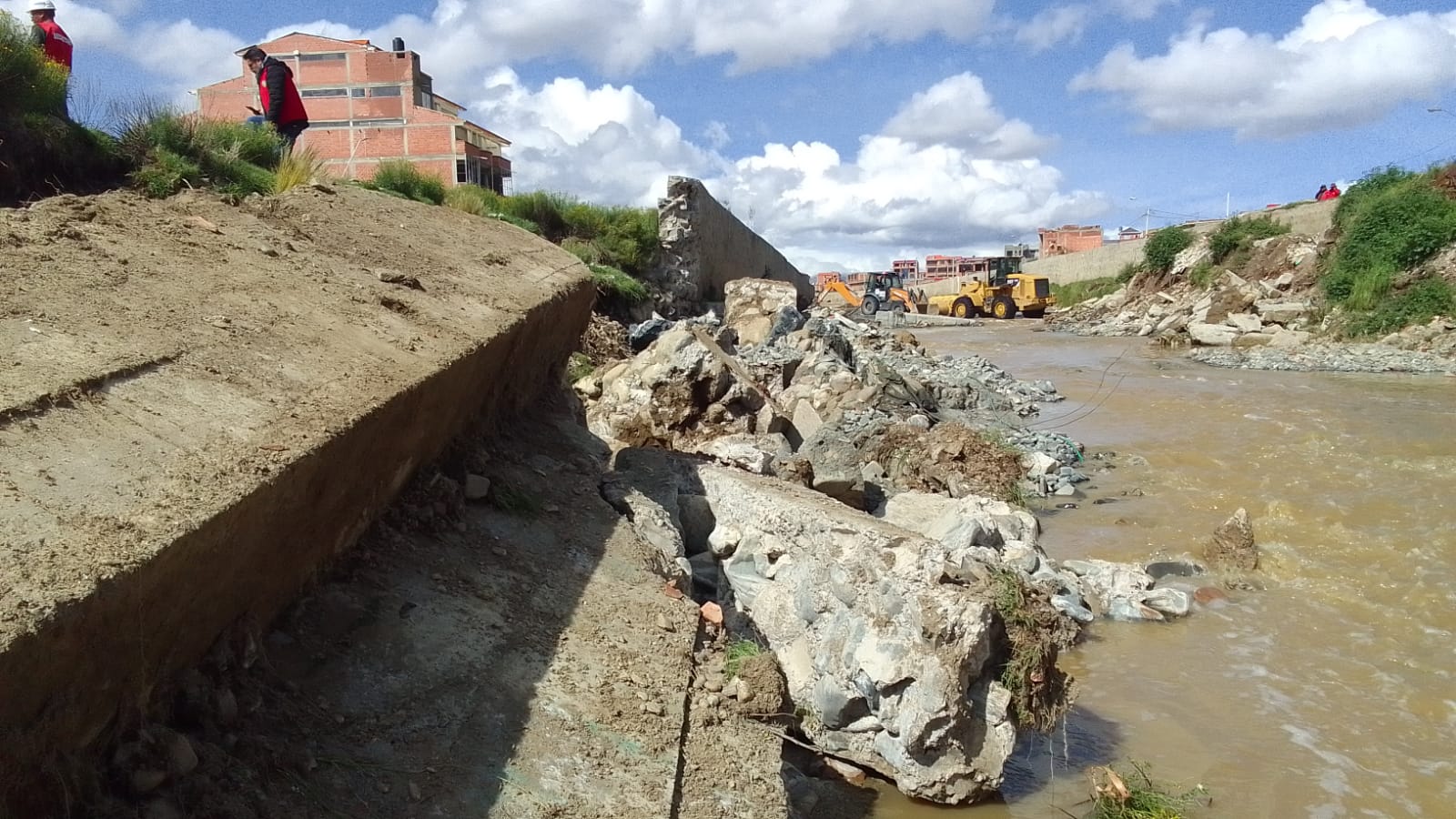La Alcaldía desplegó maquinaria pesada para reforzar la zona y evitar más daños, pero trabajadores municipales fueron agredidos el martes por pobladores que se oponen a la remoción de escombros.