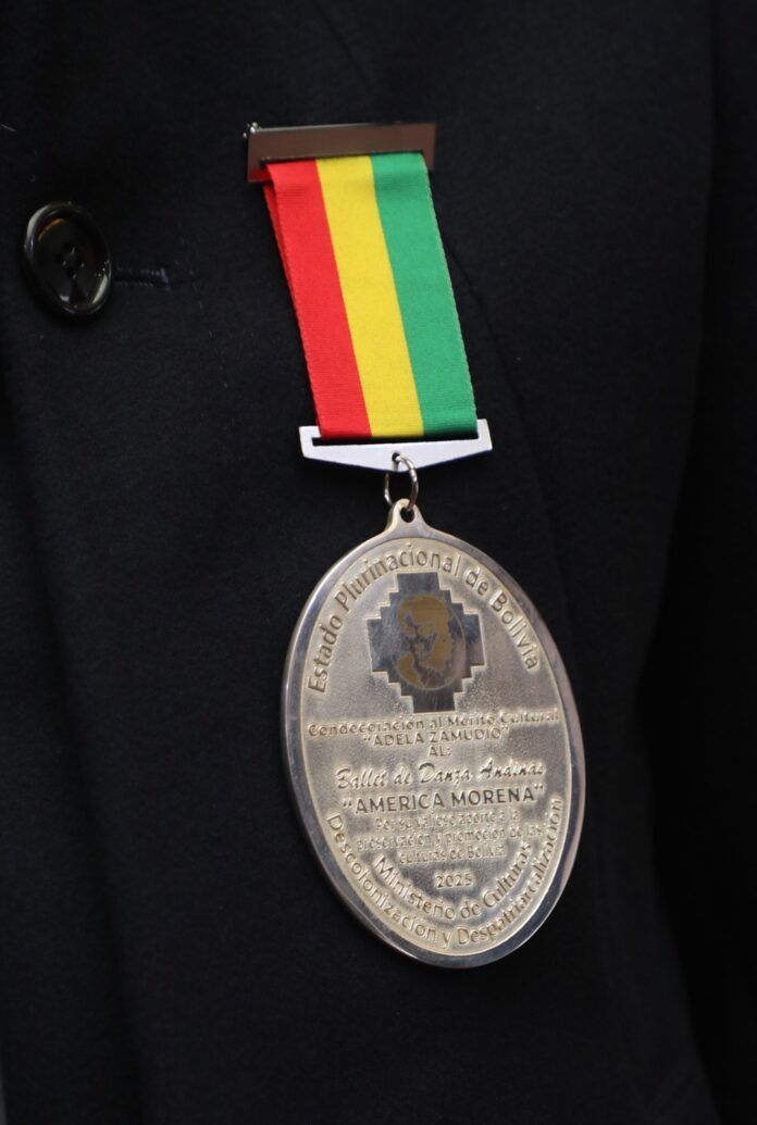 El Ministerio de Culturas, Descolonización y Despatriarcalización, a través del viceministro de Patrimonio e Industrias Culturales y Creativas, Juan Carlos Cordero, entregó la Condecoración al Mérito Cultural “Adela Zamudio” al Ballet de Danzas Andinas “América Morena”.