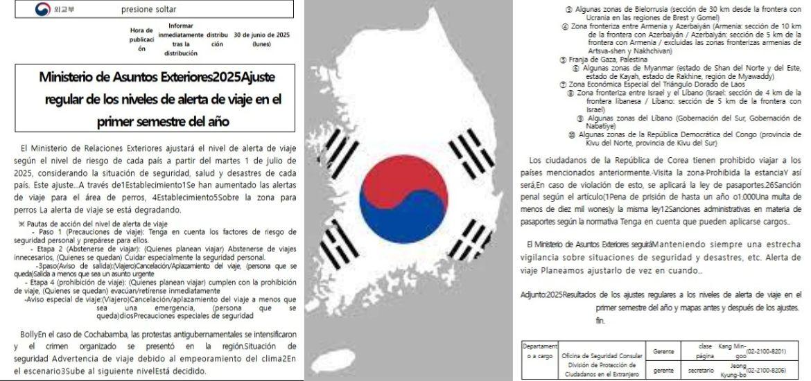 En respuesta al incremento de la violencia y las manifestaciones en Cochabamba, el Ministerio de Exteriores de Corea del Sur emitió una alerta de nivel 3 para la región, instando a sus ciudadanos a abandonar el área de inmediato. La medida también recomienda cancelar cualquier viaje planeado hacia la región debido a los riesgos de seguridad.