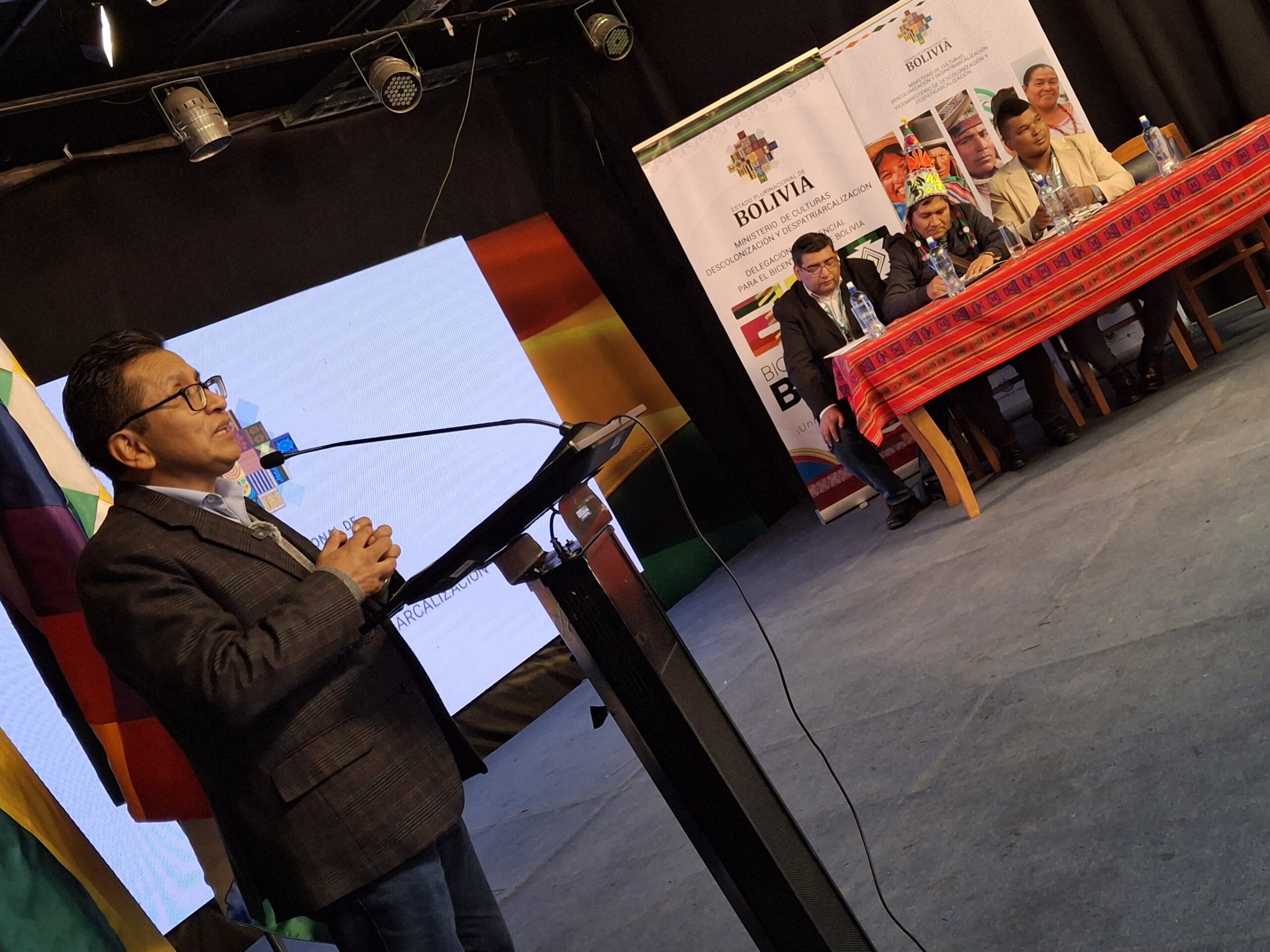 “El objetivo es construir un Estado menos burocrático, más efectivo, equitativo y empático”, afirmó el viceministro de Descolonización y Despatriarcalización, Pelagio Condori, durante el acto de presentación. También destacó el respaldo del presidente Luis Arce en esta lucha: “La firme decisión de nuestro hermano presidente es trabajar contra el racismo y la discriminación por el bien de las nuevas generaciones”.