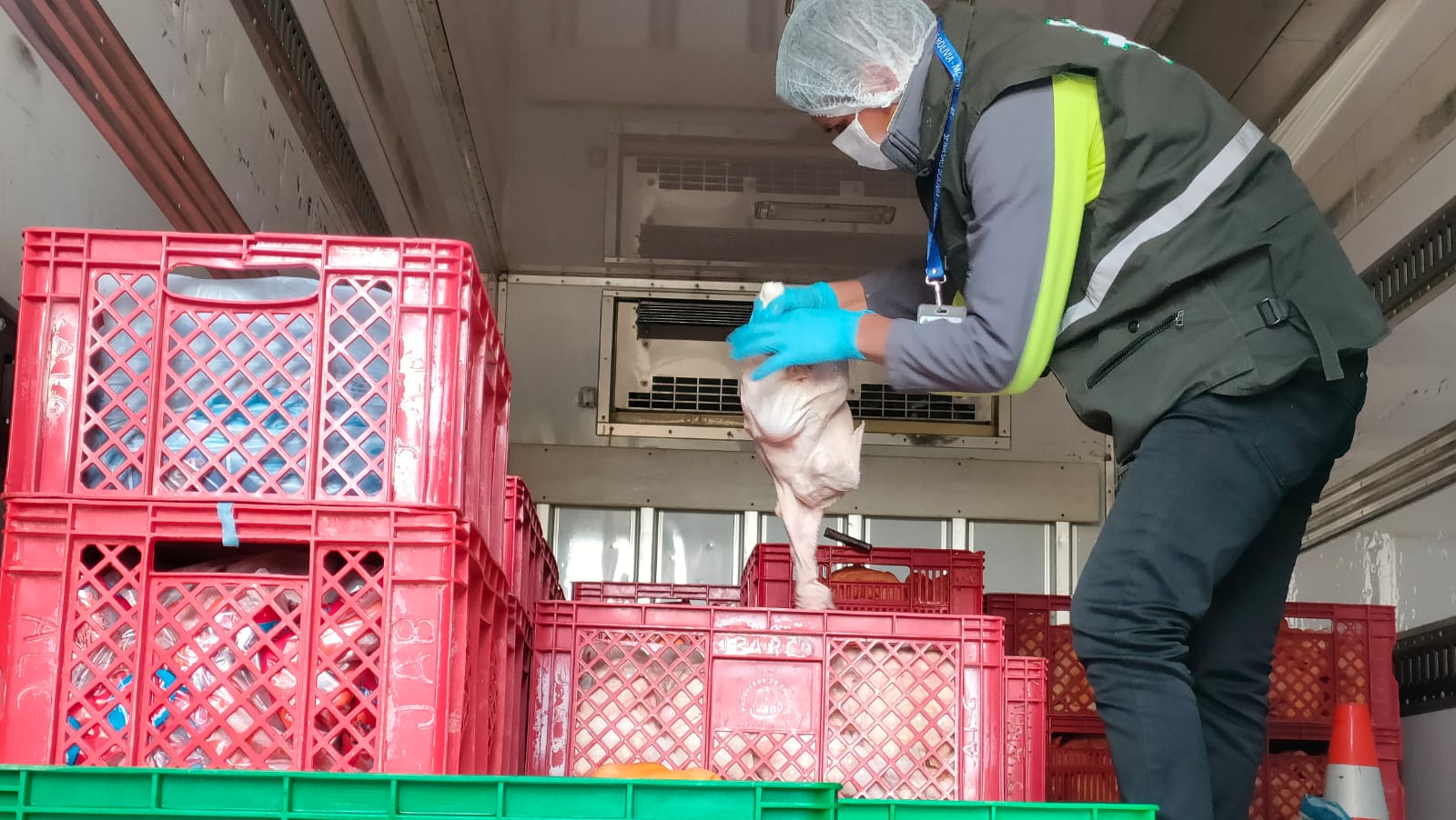 Dos camiones que transportaban aproximadamente 750 quintales de maíz, 2.100 unidades de huevo y 40 unidades de carne al vacío.