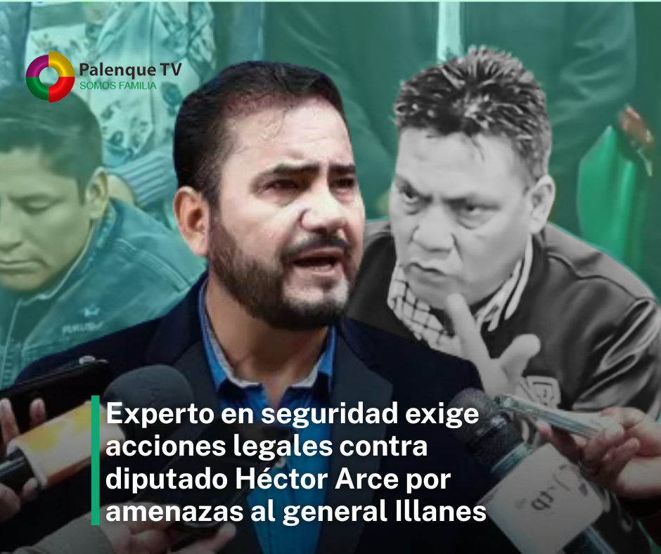 Al respecto, el experto en temas de seguridad afirmó que, “ante la amenaza directa de un diputado, lo que tiene que hacer el general (José) Illanes es activar de manera inmediata una denuncia penal contra este individuo no solamente por las amenazas, sino por su seguridad y el acoso que va a sufrir en un futuro sus hijos y su familia; puede pasar cualquier cosa producto de esta apología y esta apropiación del delito que hace Héctor Arce de una manera fuera de lugar”, reiteró.
