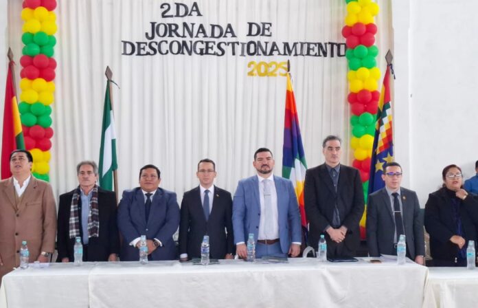 El Fiscal Departamental de Santa Cruz, Alberto Zeballos, lidera la Segunda Jornada de Descongestionamiento en el Centro de Rehabilitación Palmasola, con la participación de 76 fiscales. Este esfuerzo interinstitucional busca implementar salidas alternativas al juicio oral para reducir la población carcelaria y aliviar la sobrecarga en el sistema judicial y fiscal.