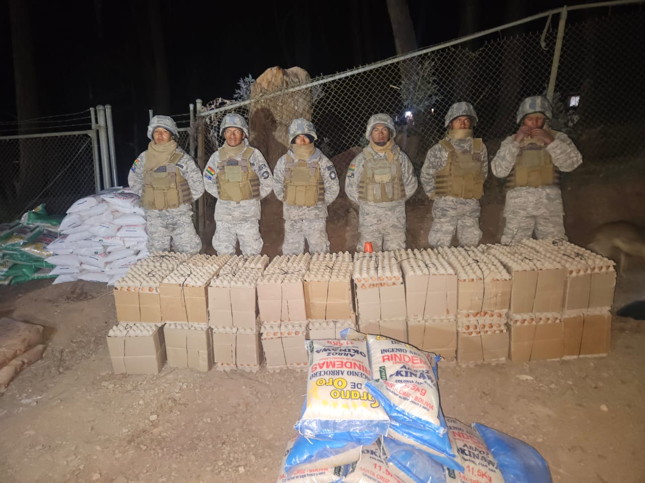 Entre los productos incautados se encuentran 56 quintales de arroz, 40 quintales y 80 saquillos de azúcar, 70 sacos de arroz de 11,5 kilogramos, 692 litros de aceite, 10 garrafas de gas, 10 bolsas de harina de 25 kilogramos y 240 maples de huevo. La carga fue interceptada antes de cruzar la frontera, como parte de las acciones desplegadas por la Armada Boliviana para frenar el denominado contrabando a la inversa.