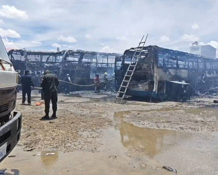 Un incendio de gran magnitud destruyó completamente cinco ómnibuses de transporte interdepartamental la mañana de este jueves en un taller mecánico ubicado en la zona este de Oruro, sobre la avenida Circunvalación. El hecho generó alarma entre vecinos y transportistas debido a la intensidad de las llamas y la densa humareda visible a varias cuadras del lugar.