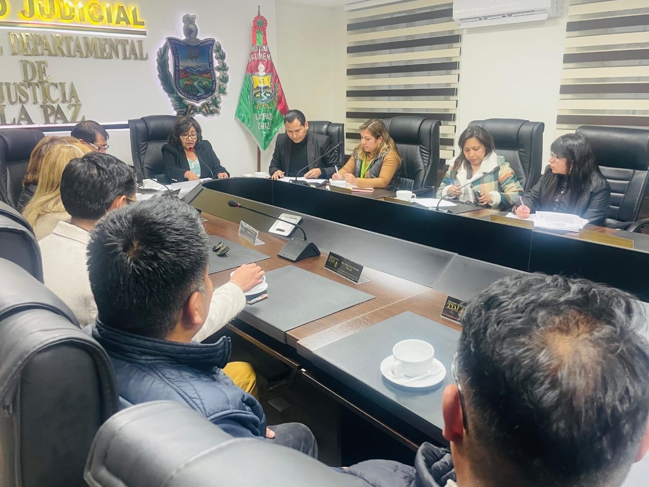 La reunión en la que se concretó el acuerdo contó con la participación del Fiscal Departamental Luis Carlos Torrez, la Magistrada del Tribunal Supremo de Justicia Fanny Coaquira, el Presidente del Tribunal Departamental de Justicia de La Paz, Yvan Córdova, vocales en materia penal y técnicos informáticos de ambas instituciones.