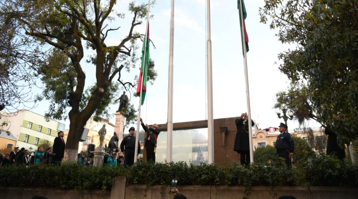 Con la tradicional iza de la bandera paceña, iniciaron esta mañana en la Plaza Murillo las celebraciones por las fiestas julias, conmemorando 216 años de la gesta libertaria paceña. El acto fue presidido por el alcalde de La Paz, Iván Arias, junto con el presidente de la Cámara de Senadores, Andrónico Rodríguez, concejales y otras autoridades locales.