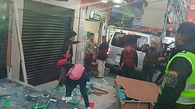 Un chofer perdió el control de su minibús la noche del lunes e impactó contra al menos cinco tiendas en la calle Eloy Salmón, en la ciudad de La Paz. El hecho dejó una persona gravemente herida y cuantiosos daños materiales.