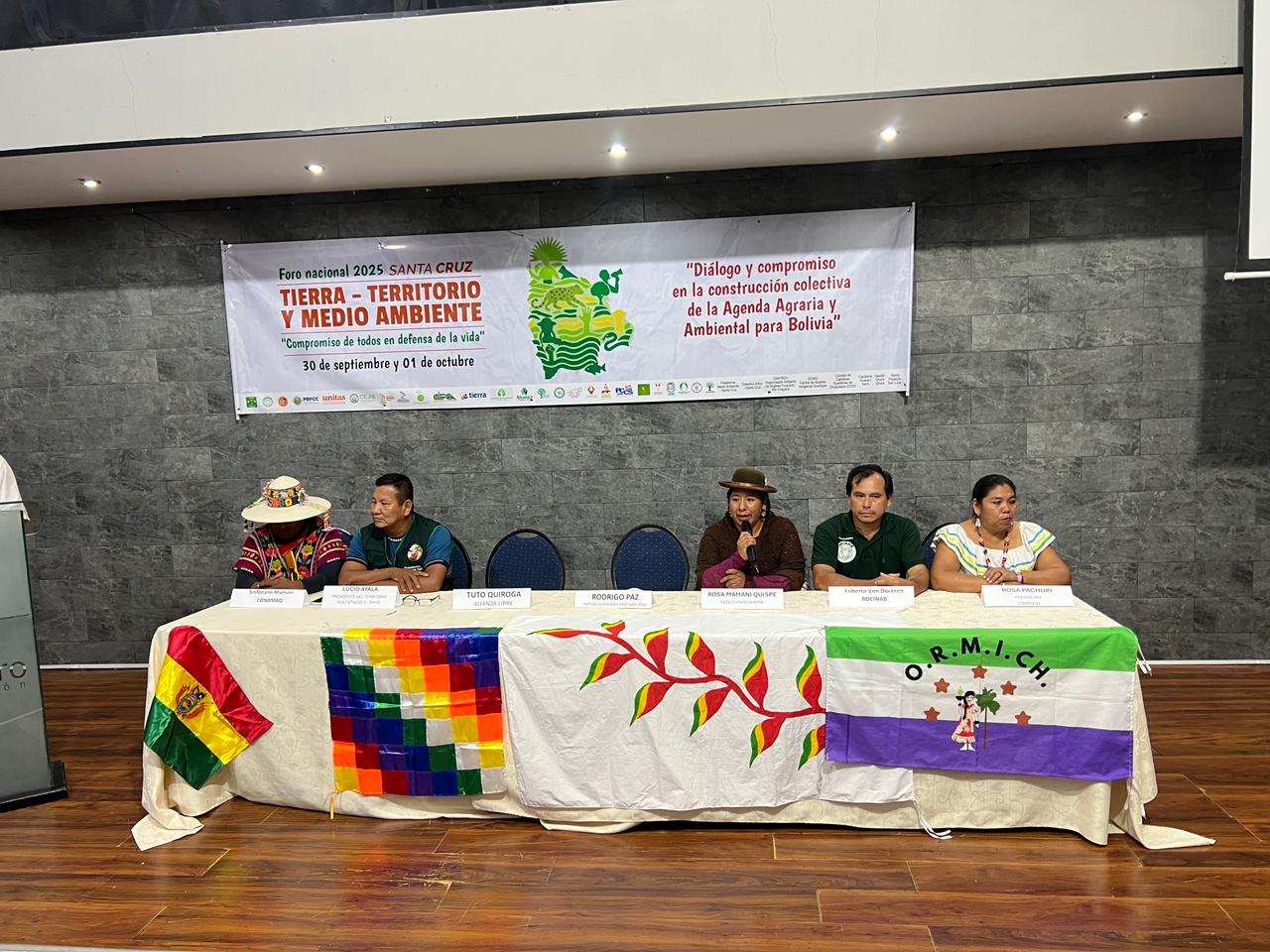 Pueblos indígenas, comunidades campesinas, naciones originarias y organizaciones presentaron este martes un manifiesto con más de 30 demandas relacionadas con tierra, territorio y medio ambiente, dirigido a los candidatos que competirán en la segunda vuelta electoral del 19 de octubre. “¡Nuestra madre tierra no está en venta!”, declararon al cierre del Foro por la Tierra-Territorio y Medio Ambiente, realizado durante dos días en Santa Cruz.