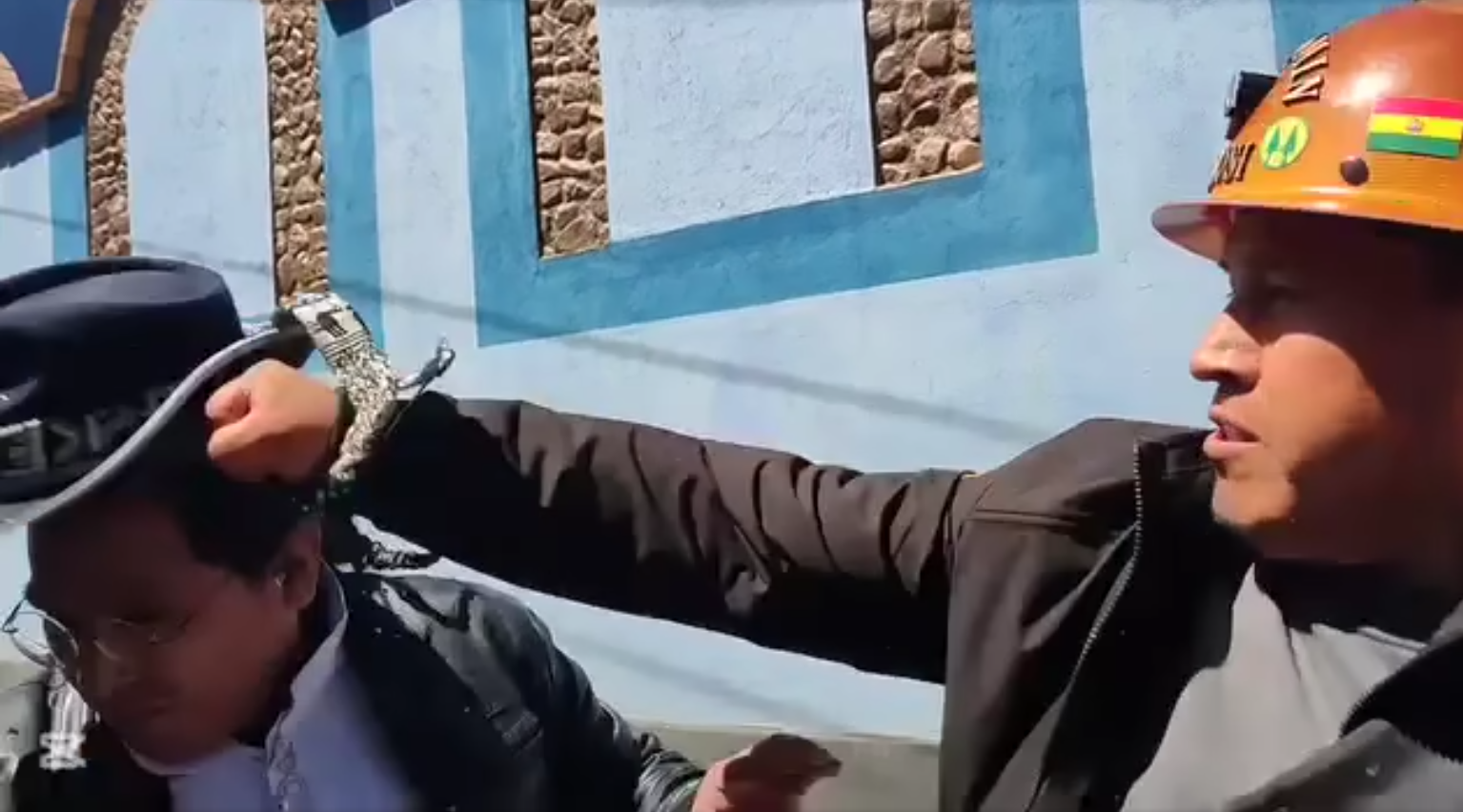 Después de la agresión, los mineros lo insultaron con expresiones como: “Sin casco no me entras perro pelotudo”, mientras bloqueaban la entrada principal de las oficinas del Senarecom en Potosí.