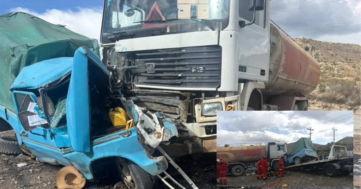 Un violento accidente de tránsito ocurrido la tarde del domingo 28 de septiembre en la carretera Potosí – Cuchu Ingenio dejó como saldo dos personas fallecidas. El choque frontal entre una camioneta y un camión cisterna en el sector del Ingenio Casa Blanca provocó que los ocupantes del vehículo menor quedaran atrapados entre los fierros retorcidos, perdiendo la vida de forma instantánea.